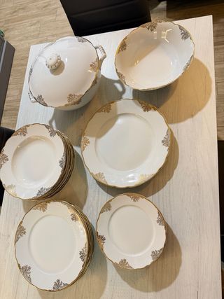Elegante servizio da tavola Richard Ginori da 6 persone. Un'aggiunta raffinata alla tua mise en place. - Design classico Richard Ginori. DECORAZIONI IN ORO ZECCHINO - servizio da 6 comprensivo di zuppiera, insalatiera e piatto da portata