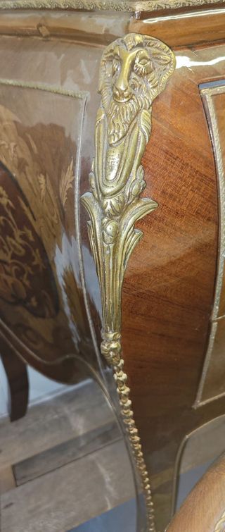 Cassettiera bombata stile Luigi XV, impreziosita da eleganti intarsi floreali in essenze di legno chiaro su fondo scuro e lucido. Dotata di due spaziosi cassetti decorati con maniglie e applicazioni in bronzo dorato sbalzato. Perfetta per completare una camera da letto classica, abbinata ai due comodini coordinati. cassettiera: Altezza: 90 cm Profondità: 40 cm Larghezza posteriore: 105 cm Larghezza anteriore: 90 cm comodini: Altezza: 80 cm Profondità: 30 cm Larghezza posteriore: 50 cm Larghezza anteriore: 45 cm Prezzo trattabile Disponibile da subito Disponibile per il ritiro a Pero(MI). info@mpsgroup.com/334-9765583/02353538111.