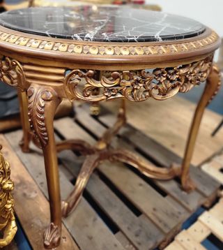 Tavolino rotondo con decorazioni dorate