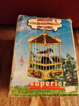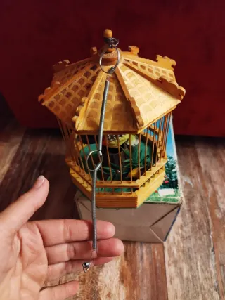 Gabbietta decorativa con un uccellino sonoro. Un elemento d'arredo unico. Gabbietta vintage con uccellino sonoro con molla da appendere funzionante a pile parte in plastica da avvitare marca Superior - Design a gabbia. - Uccellino sonoro incluso.
