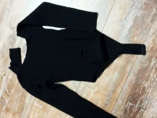 Maglioncino a collo alto con chiusura a body. Maglioncino lupetto body a costine colore nero taglia M scollo particolare etichetta non presente - Tessuto morbido e confortevole. - Design elegante e versatile.