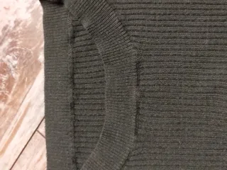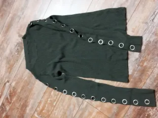 Maglioncino aderente con un design particolare. Il tessuto a costine dona un tocco moderno. Maglioncino leggero con fori a costine verde militare usato poco ottima vestibilità taglia S - Dettagli con occhielli lungo le maniche e il fianco. - Scollo a girocollo. - Maniche lunghe.