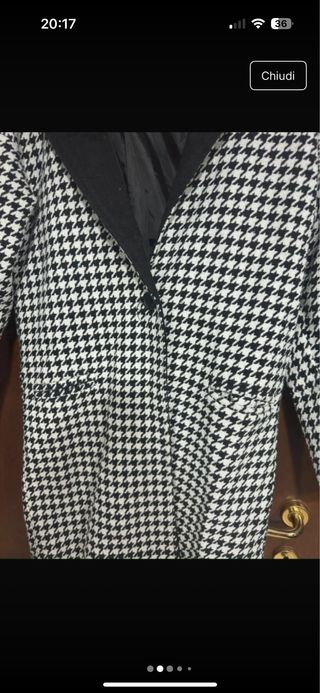 Giacca con un classico motivo pied de poule. - Fantasia pied de poule. - Colletto nero. - Chiusura con bottone.