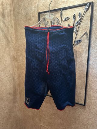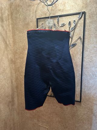 Guaina anticellulite a compressione graduata. - Misura S - Tessuto blu con motivo a rombi - Coulisse rossa in vita