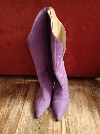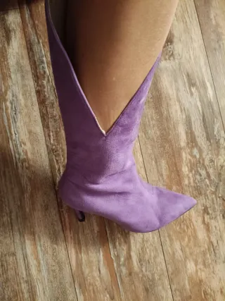 Stivali eleganti in camoscio, con un design unico. Stivali scamosciati particolari colore lilla taglia 38 tacco cm 8 comodo bellissimi in tutte le stagioni nuovi - Materiale: camoscio - Dettaglio con zip posteriore - Punta affusolata - Tacco a spillo