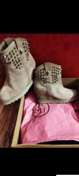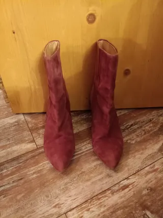 Eleganti stivaletti con zeppa, realizzati in camoscio. Stivaletti in camoscio con zeppa taglia 38 bordeaux comodi marca Zara - Materiale: camoscio e pelle. - Design con zeppa. - Altezza gambale media.