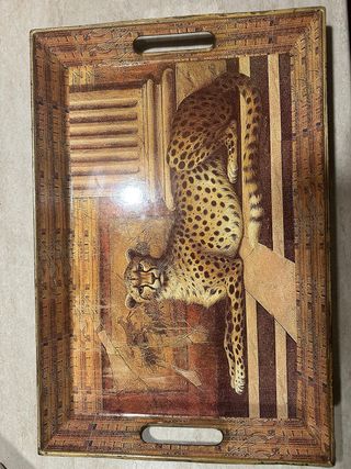 Vassoio vintage con stampa ghepardo Misure 45x30x5