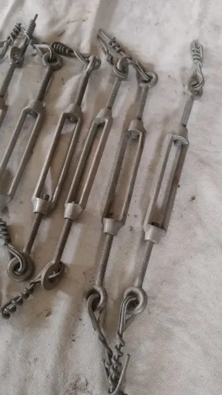 Set di tenditori in metallo, ideali per regolare la tensione dei cavi. - Materiale: metallo resistente. - Design a vite per una facile regolazione. - Adatti per diverse applicazioni.