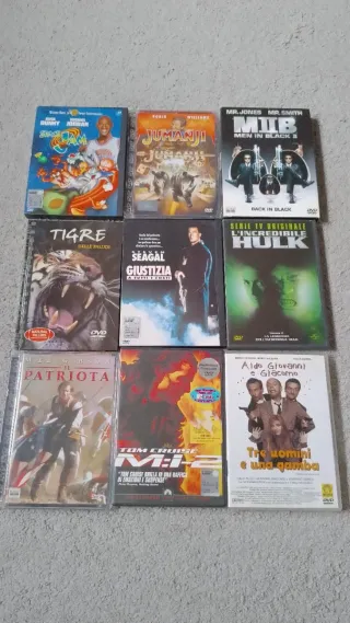 Vendo lotto di DVD con film di vario genere. - Space Jam - Jumanji - Men in Black II - Tigre delle Paludi - Seagal Giustizia a tutti i costi - L'Incredibile Hulk - Il Patriota - Tom Cruise M:i-2 - Tre uomini e una gamba