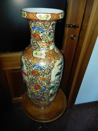 Elegante vaso cinese con decorazioni dettagliate. - Motivi floreali e scene figurative. - Bordi decorati con motivi geometrici e dorati. - Ampia base e collo svasato. H 60 l 23