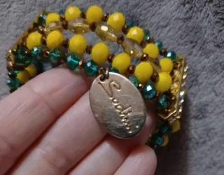 Bellissimo bracciale elastico Sodini con perline. - Design a più fili. - Perline gialle e verdi. - Chiusura a moschettone con dettaglio strass. - Charm ovale con logo inciso.