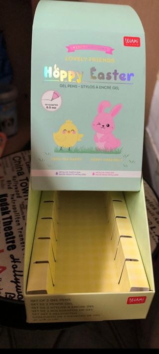 Set di 2 penne gel Legami a tema Hoppy Easter. Perfette per la Pasqua. - Design a tema pasquale con simpatici personaggi. - Inchiostro gel metallizzato viola. - Edizione limitata. Inclusa scatola contenitore vuota