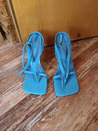 Sandali da donna eleganti e alla moda. Sandali azzurri taglia 38 usati una volta comodi tacco cm 8 - Design con cinturini sottili. - Punta quadrata. - Chiusura con cinturino alla caviglia.