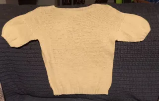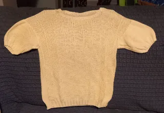 Maglione lavorato a mano con un design unico. - Maniche corte a sbuffo. - Scollo rotondo. - Tessuto lavorato a maglia con trama a rombi.