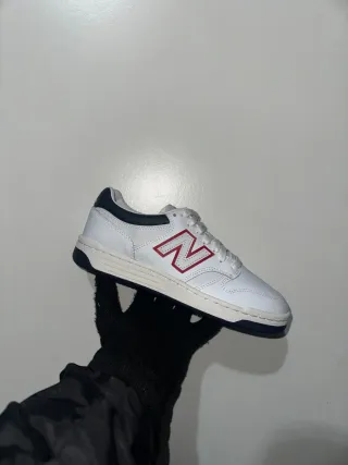 Scarpe New Balance modello 480. -Unisex - Tomaia in pelle bianca. - Dettagli rossi sul logo 'N'. - Inserti blu sul tallone e sulla suola.
