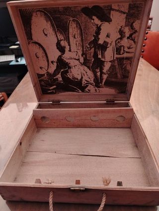 Valigetta in legno di pino,versatile(puo' contenere 4 bottiglie..ma non solo);misure:34x31x9 cm.in condizioni piu' che buone. Accessorio per regalo. Prezzo fisso.