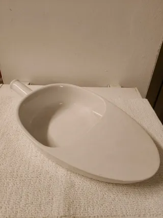 Bacinella padella pitale sanitario in ceramica bianca, un pezzo d'antiquariato anni 30-40 - Design classico con manico. - Materiale in ceramica smaltata. Unico difetto in foto