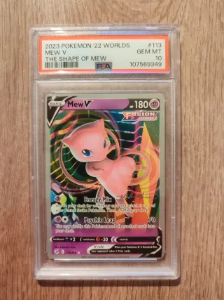 Carta Pokemon Mew V dal set Fusion Strike, numero 113/264. Graduata PSA 10. - Edizione: 2023 Pokemon '22 Worlds - Carta: Mew V - Set: The Shape of Mew - Grado: GEM MT 10 - Numero di serie PSA: 107569349