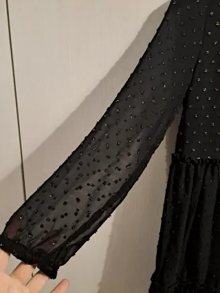 Vestito corto con fodera attaccata, maniche lunghe velate, chiusura con bottoni. 146 cm, 10 - 11 anni