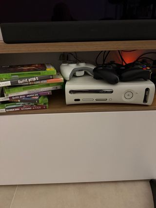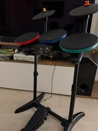 Vendo console Xbox 360 completa di batteria per Guitar Hero e diversi giochi. - Console Xbox 360. - Batteria per Guitar Hero. - Vari giochi inclusi. con 3 joypad