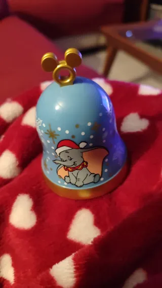 Graziosa campanella a tema Disney con Dumbo. Perfetta per le feste. - Dumbo indossa un cappello da Babbo Natale. - Decorazioni a tema natalizio con fiocchi di neve e stelle. - Dettaglio con orecchie di Topolino dorate in cima.