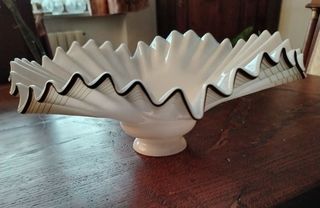Opalina vintage,color bianco-latte con bordo marrone e beige,ondulata,condizioni perfette come al nuovo,diametro maggiore:30 cm circa,diametro minore:6,50 cm con foro di 4 cm.Bellissima! Prezzo fisso.