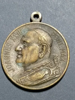 Medaglia commemorativa di John F. Kennedy, presidente degli Stati Uniti. - Raffigura il profilo di J.F.K. - Anno di nascita e morte: 1917-1963. - Incisione WALLY sul bordo inferiore.retro Papa Giovanni XXIII