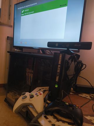 Console -Xbox 360 E- perfettamente funzionante con disco rigido da 500GB e sensore Kinect. La mascherina del lettore cd è fatta in 3d e il nome è sbagliato, ne fornirò anche una vuota. -Ripulita completamente all'interno -2 Controller funzionanti -Kinect e alimentatore nuovo