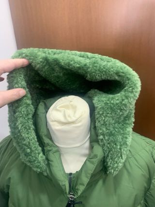 Caldo piumino con cappuccio, perfetto per le giornate più fredde. Presenta una chiusura centrale con bottoni a pressione e due tasche frontali con patta e bottone. - Imbottitura in vera piuma. - Dettagli con bottoni a pressione. - Due tasche frontali.