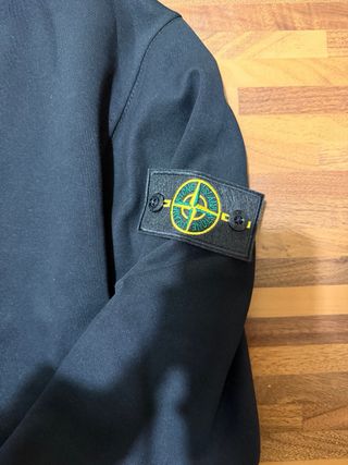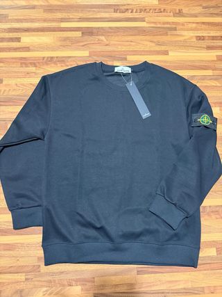 Felpa Stone Island di colore nero, taglia L. Presenta il classico badge Stone Island sulla manica sinistra. con QR code di autenticità - Logo Stone Island sulla manica.