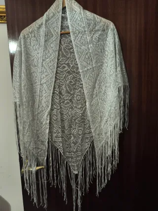 Sciarpa scialle argento con frange