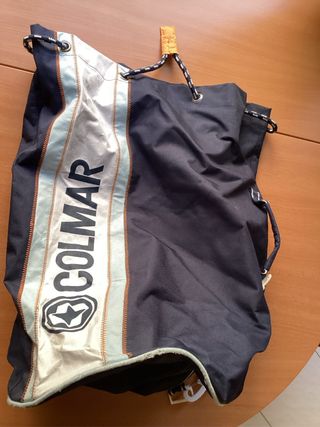 Sacca zaino Colmar di colore nero. Presenta una striscia verticale con logo. - Chiusura con cordino. - Manico superiore. - Tracolla regolabile.