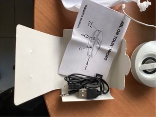 Mini cassa portatile JBL ON TOUR MICRO, ideale per ascoltare musica ovunque. Include la sua custodia e il manuale. - Cavo di ricarica USB e cavo audio inclusi. - Design compatto e leggero.