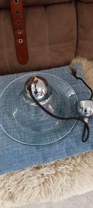 Lampadario vintage in stile Murano degli anni '70. Un pezzo unico che aggiunge un tocco di eleganza. - Struttura in metallo lucido. - Piatto in vetro trasparente.