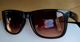 Occhiali da sole Rayban Justin RB 4165 54-16 con montatura nera e lenti marroni sfumate ray ban, aste con protezione interna sulla scritta per farla resistere di più. Per il resto caratteristiche come da foto. Il modello cool della collezione Ray-Ban, d'ispirazione al modello Wayfarer. Sportivi, dinamici e versatili, ecco le caratteristiche che contraddistinguono gli occhiali da sole Ray-Ban Justin RB 4165. Un frontale dalla forma rettangolare quasi lineare e aste grintose ben visibili fanno di questo modello Ray-Ban in acetato un accessorio eyewear che sicuramente si distingue e accompagna chi lo indossa.