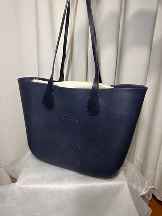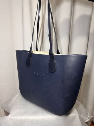 Borsa O bag in materiale resistente e manici in ecopelle. Borsa usurata come da foto. - Colore blu intenso. - Design capiente e versatile. - Logo O bag inciso frontalmente.