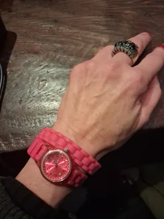 Orologio da polso con cinturino in gomma. molto lungo cm 40 Può essere usato come girocollo Pile da sostituire Attualmente è fermo - Quadrante rotondo. - Dettagli luminosi sul bordo del quadrante. - Chiusura con fibbia.