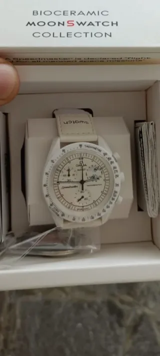Orologio Swatch x Omega MoonSwatch Mission to the Moonphase. - Cassa in bioceramica. - Collezione MoonSwatch.