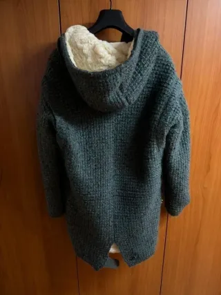 Vendo cappotto in lana made in Italy mai utilizzato, in condizioni perfette. Taglia S ma veste grande. Per ulteriori informazioni sono disponibile in privato. - Chiusura con bottoni. - Tasche frontali con patta e bottone. - Cappuccio foderato.