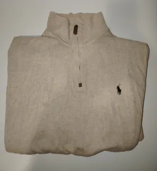 Maglione Ralph Lauren da uomo, colore beige. Presenta un design con zip. - Logo Ralph Lauren ricamato sul petto. - Collo alto con zip. - Maniche lunghe. - Polsini e fondo a costine.