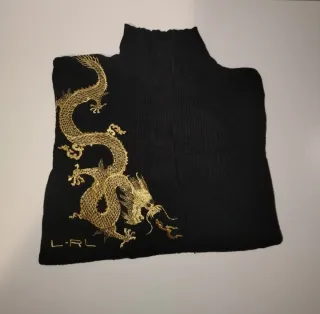 Elegante maglione Ralph Lauren con un'iconica stampa di drago dorato. - Design a girocollo. - Maniche lunghe. - Dettaglio ricamato sul davanti.