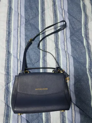 Borsa a tracolla Michael Kors in pelle blu con dettagli dorati. Borsa originale tenuta molto bene, ha qualche difetto sul tessuto, tutto fotografato, niente sorprese, interni ottimi, cerniere funzionanti, tracolla perfetta. Misura comoda ma anche molto capiente. Colore blu. Pagata 230 euro. - Logo Michael Kors dorato sul davanti. - Tracolla regolabile. - Dettagli metallici color oro.