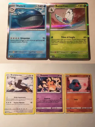 Set di carte Pokémon. - Wailord (Fase 1) - Butterfree (Fase 2) - Braviary di Hisui - Dedenne - Nosepass