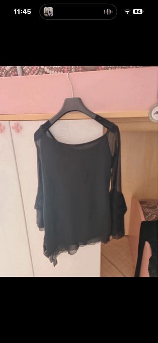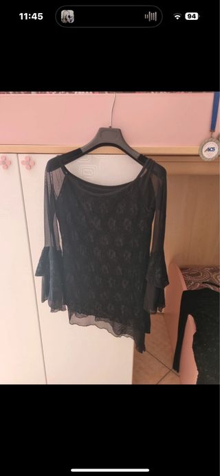 Maglia donna nera pizzo manica a campana