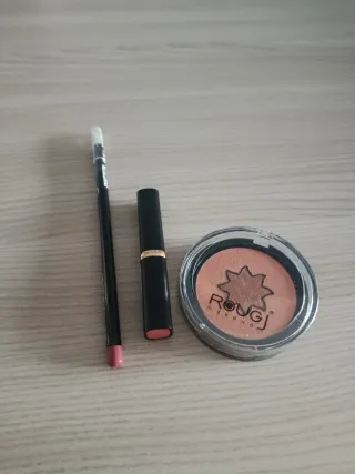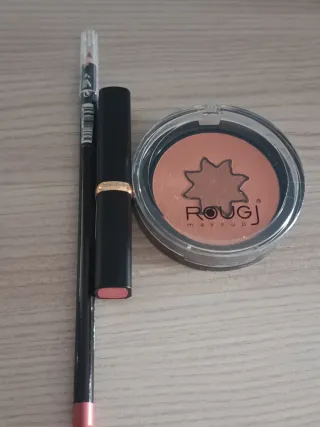 Set di makeup composto da rossetto L'Oréal, matita labbra e blush.