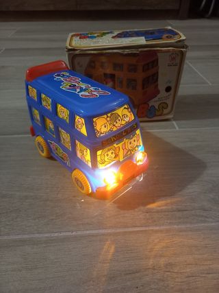 Scuolabus giocattolo vintage degli anni '90, prodotto da GIG. Un classico per collezionisti e appassionati. - Design colorato a due piani. - Decorato con personaggi. - Luci funzionanti.