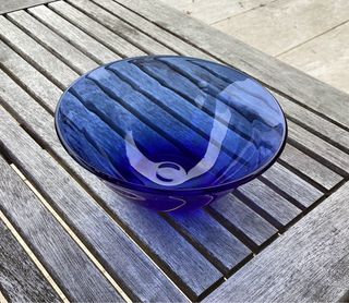 Ciotola di vetro blu cobalto a forma di conchiglia