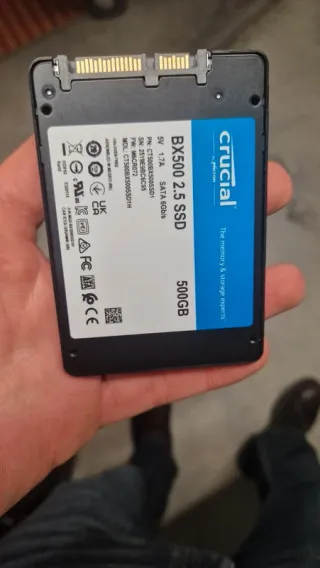 Item Specifications Brand: Crucial (by Micron) Model: BX500 Capacity: 500 GB Form Factor: 2.5-inch Interface: SATA 6Gb/s (SATA III) Device Type: Internal Solid State Drive (SSD) Technical Details Part Number (PN): CT500BX500SSD1 Model ID: CT500BX500SSD1H Serial Number: 2519E9BC6C95 Firmware: M6CR072 Power Rating: 5V 1.7A