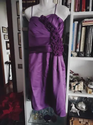 Elegante abito da cerimonia Carlo Pignatelli. - Colore viola intenso. - Decorazioni floreali sul corpetto. - Tessuto satinato. - Foderato e rifinito con accorgimenti per indosso perfetto. - Portato in lavanderia dopo un solo evento. - Taglia IT 44 - Pagato 450 € vendo a metà prezzo.