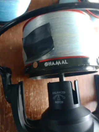 Mulinello da surf casting con 2 bobine di ricambio. - Bobina principale con filo. - le 2 Bobine di ricambio con filo. - Design nero e rosso.